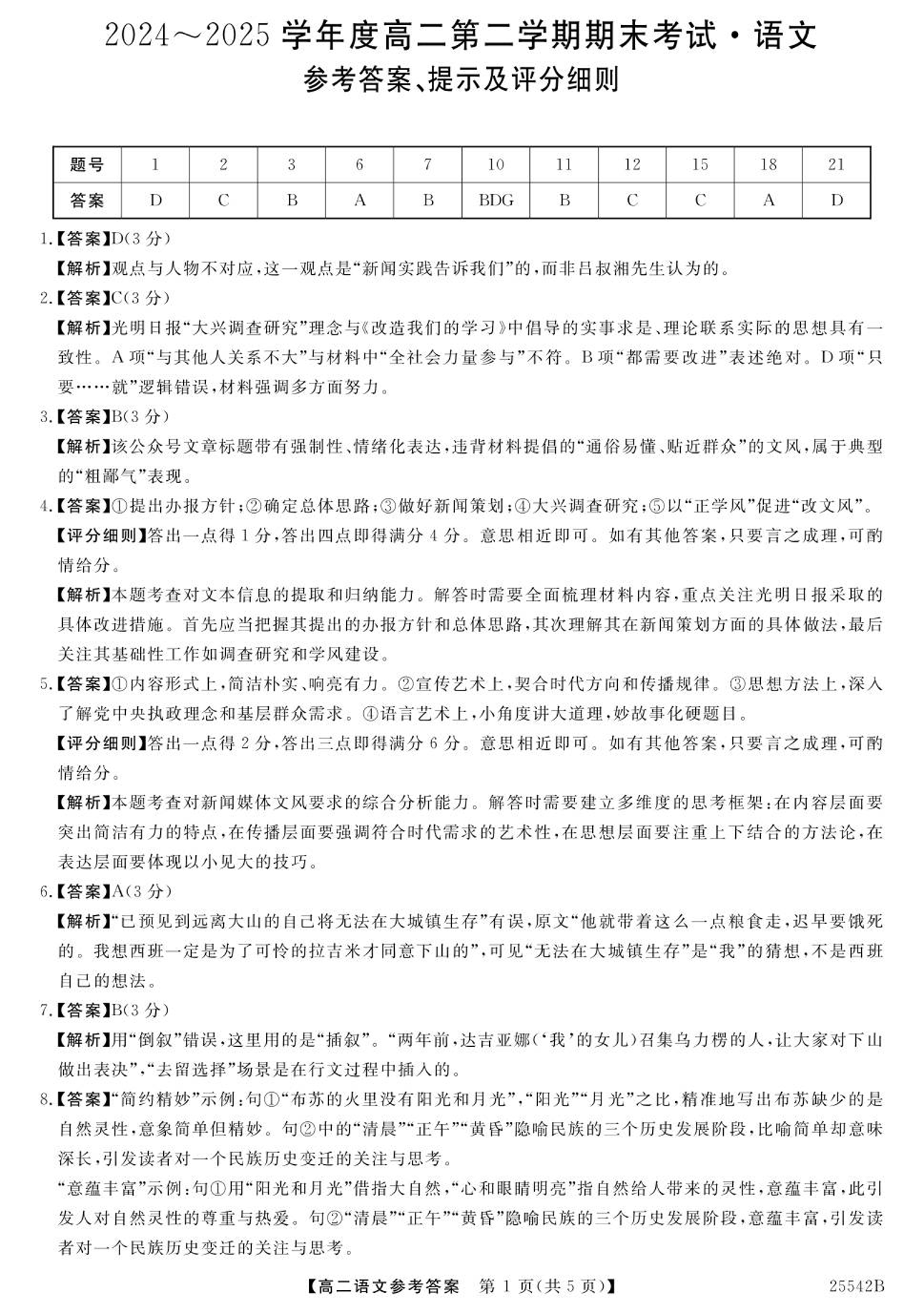 高二语文答案--吉林省白山市五校2024-2025学年高二下学期期末联考