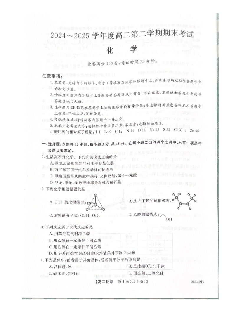 高二化学+答案--吉林省白山市五校2024-2025学年高二下学期期末联考