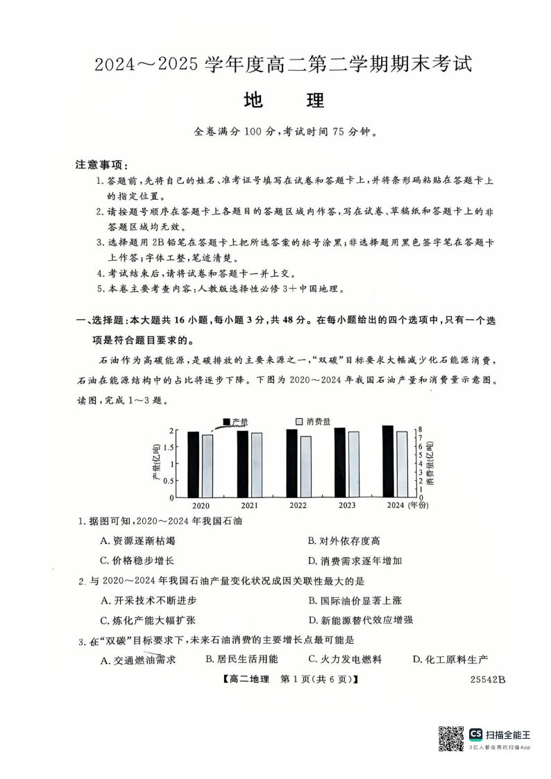 高二地理+答案--吉林省白山市五校2024-2025学年高二下学期期末联考