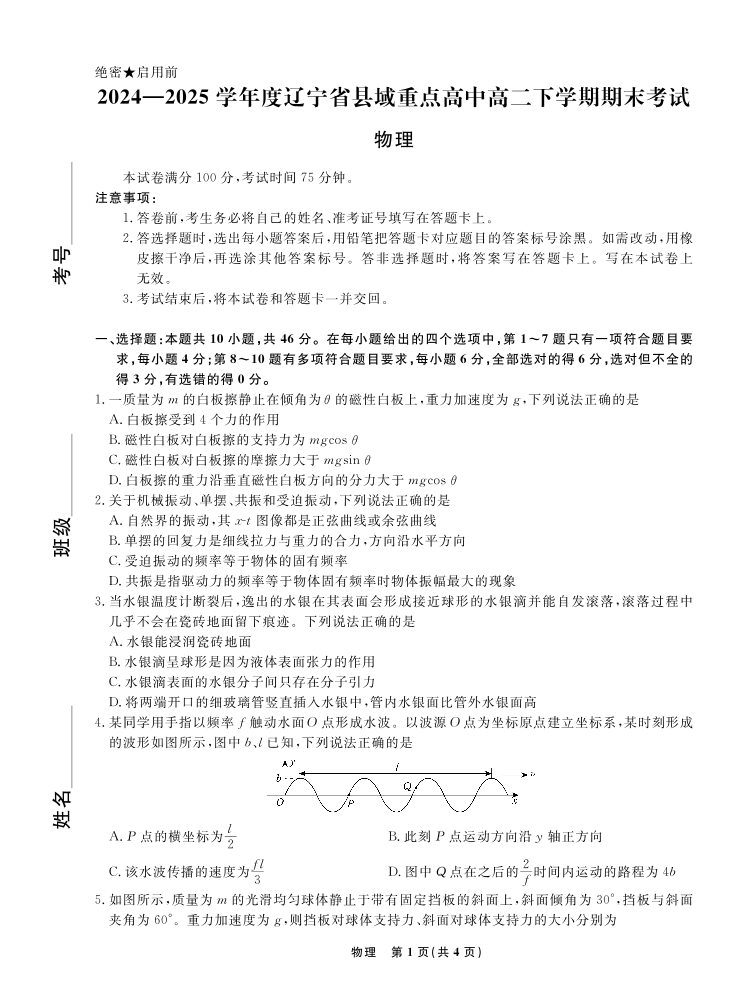 高二物理+答案--辽宁省县域重点高中2024-2025学年高二下学期期末