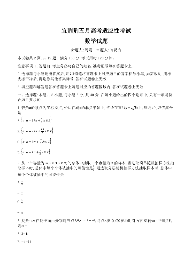 湖北省宜荆荆2024届高三下学期五月适应考数学