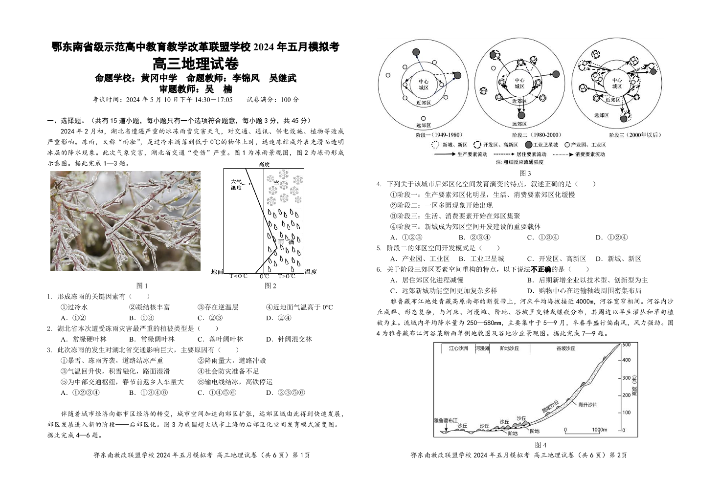 湖北省鄂东南省级示范高中教育教学改革联盟 2024 年高三五月模拟考地理