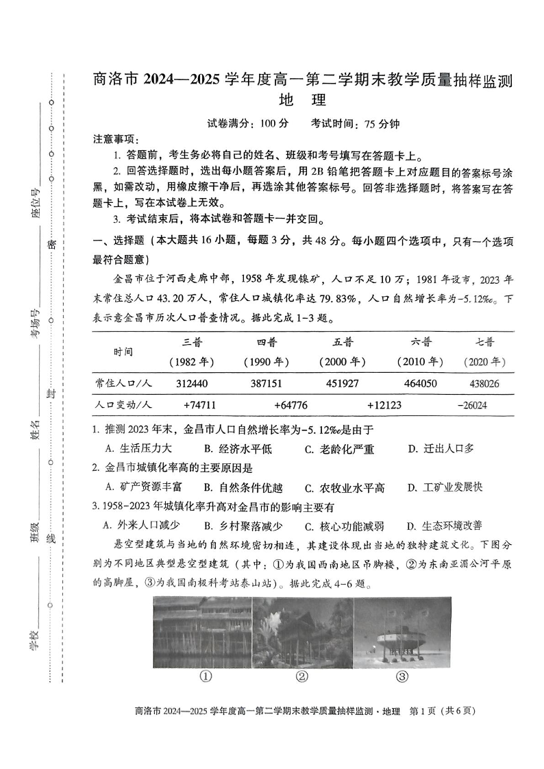 高一地理+答案--陕西省商洛市2024-2025学年高一下学期期末
