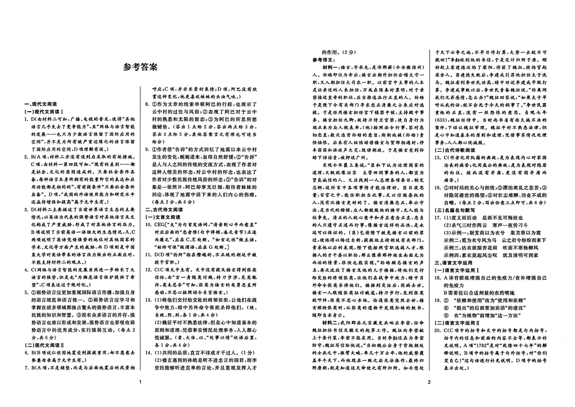 湖南省长沙市第一中学2024届高考适应性演练(三)语文答案