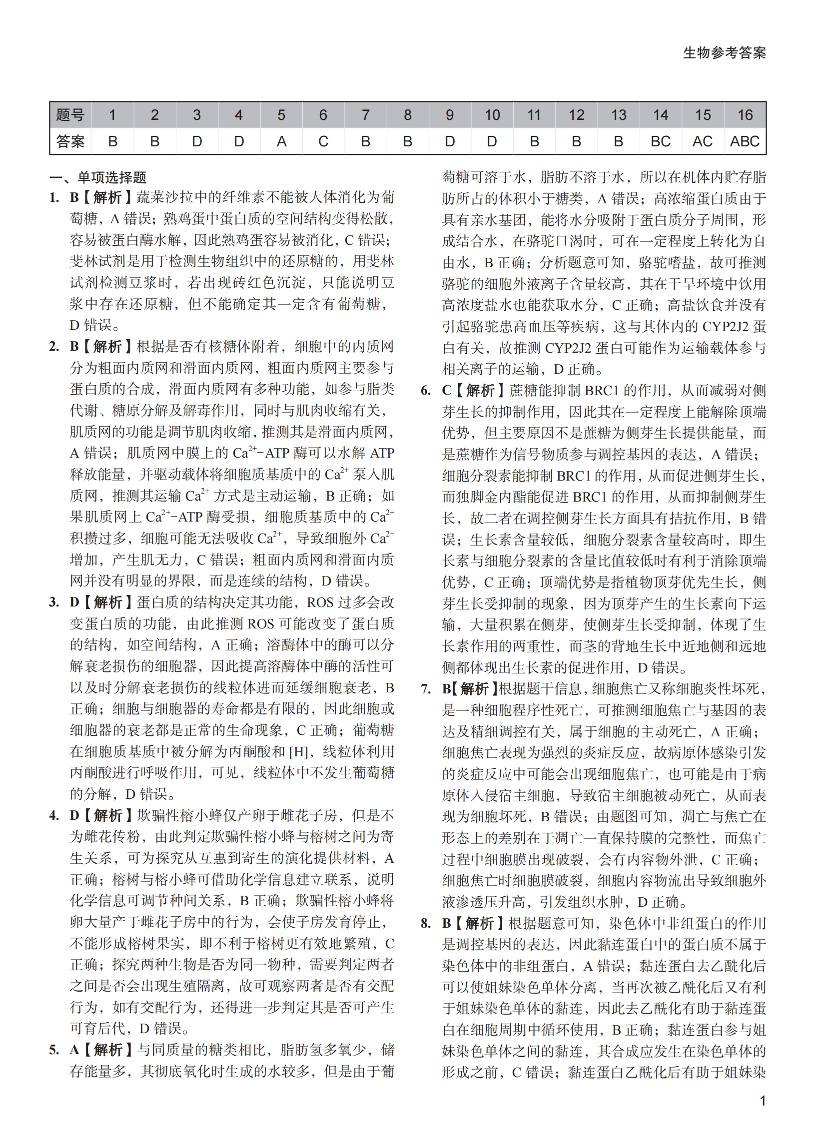 湖南省长沙市第一中学2024届高考适应性演练(三)生物答案