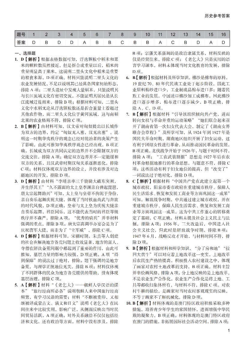 湖南省长沙市第一中学2024届高考适应性演练(三)历史答案