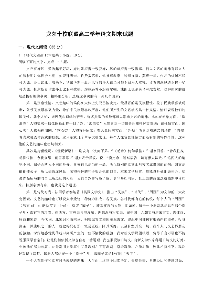 高二语文+答案--黑龙江省龙东十校联盟2024-2025学年高二下学期期末考试
