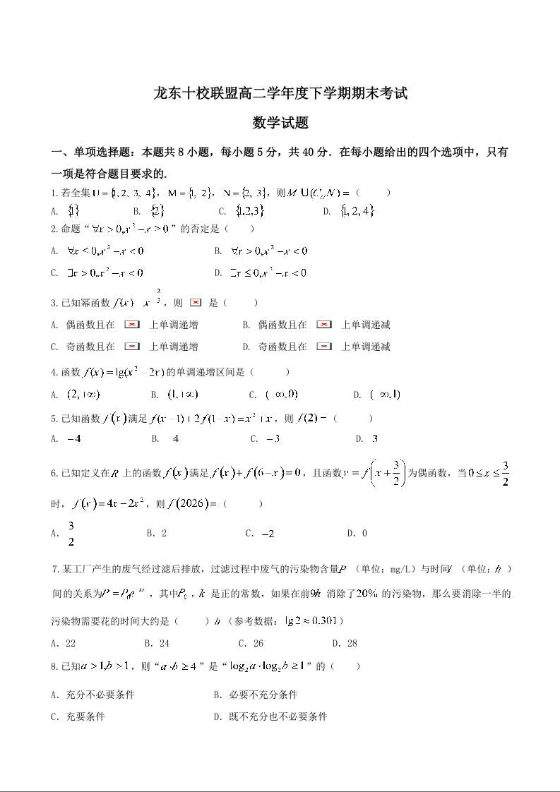 高二数学+答案--黑龙江省龙东十校联盟2024-2025学年高二下学期期末考试
