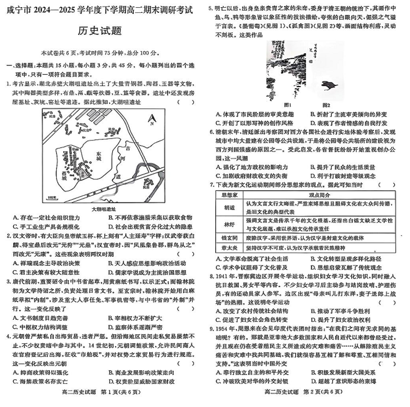 高二历史+答案--湖北省咸宁市2024-2025学年高二下学期期末考试