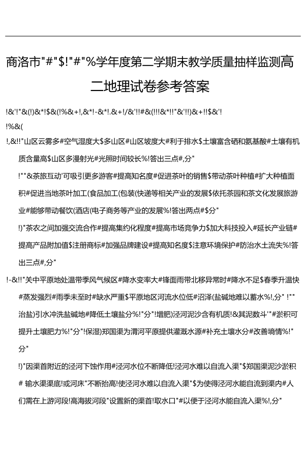 高二地理答案--陕西省商洛市2024-2025学年高二下学期期末