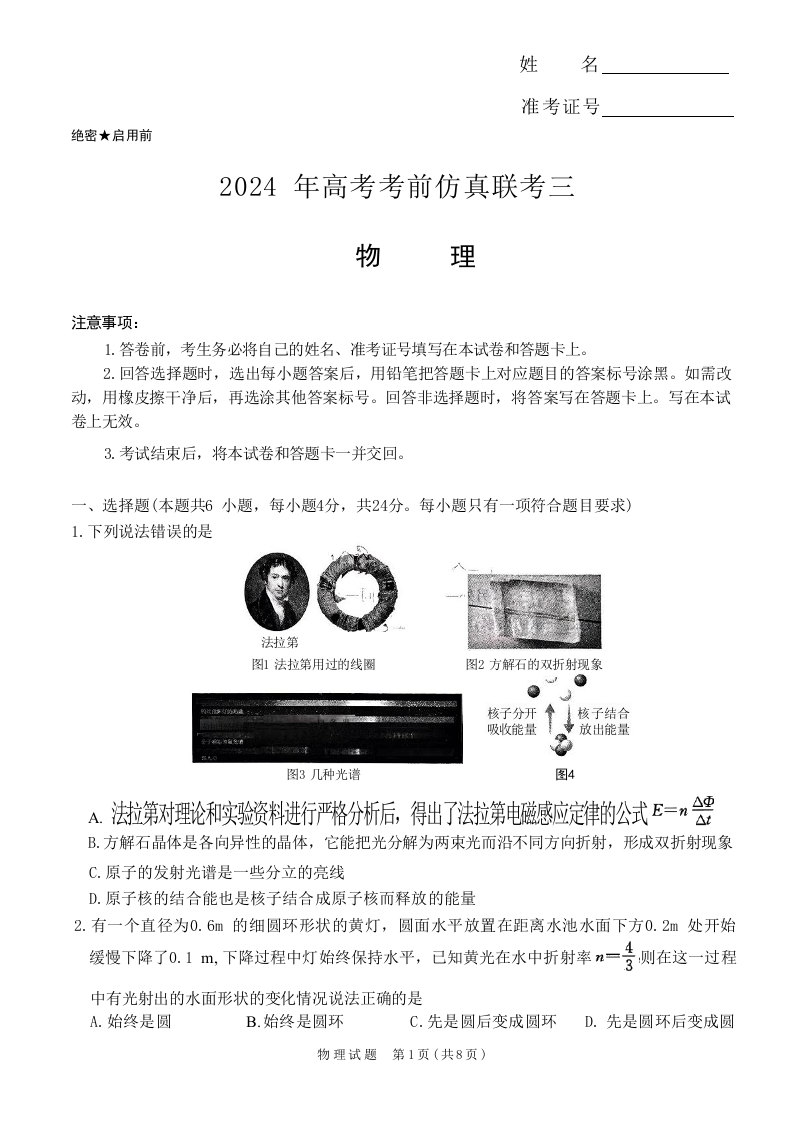 湖南省炎德2024届高三5月考前仿真联考(三)物理