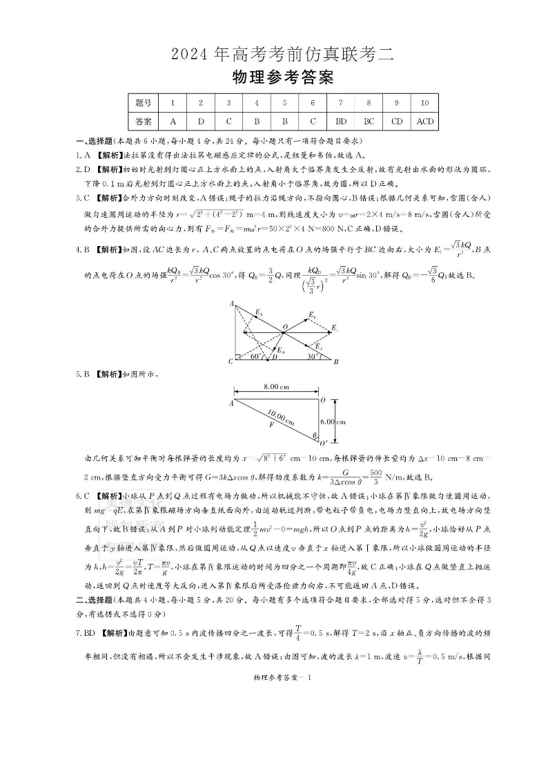 湖南省炎德2024届高三5月考前仿真联考(三)物理答案