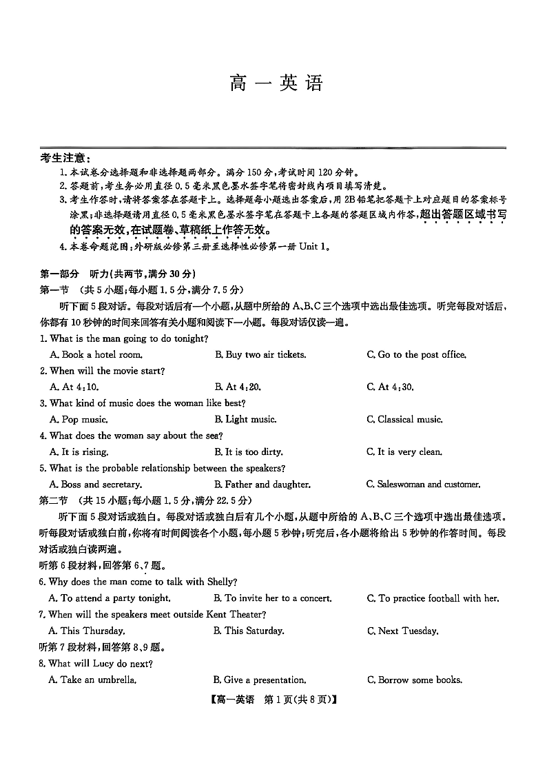 高一英语+答案--辽宁省九师联盟2024-2025学年高一下学期7月期末联考