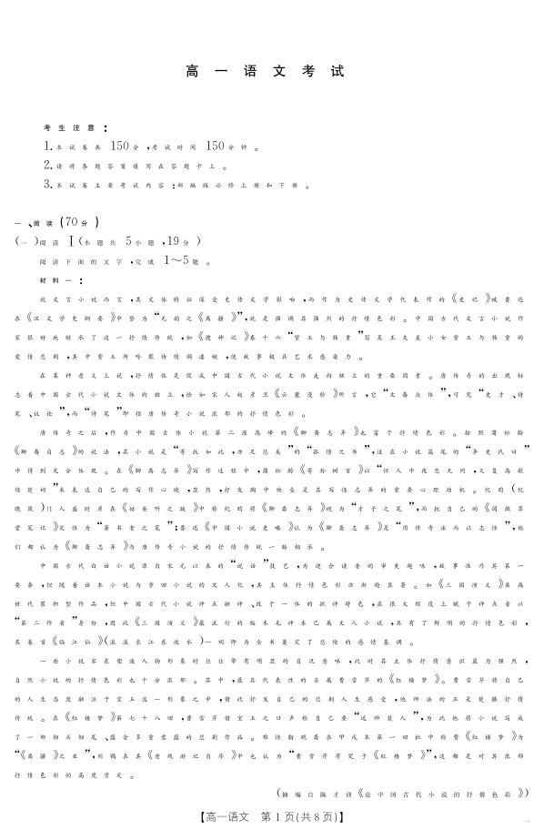 高一语文--内蒙古2024-2025学年高一下学期7月联考