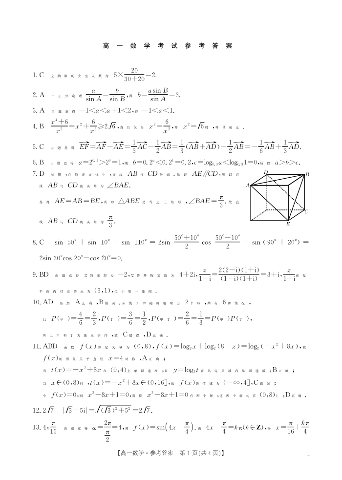 高一数学答案--内蒙古2024-2025学年高一下学期7月联考