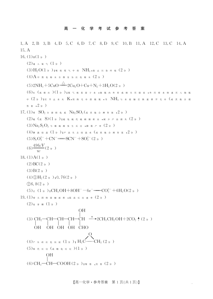 高一化学答案--内蒙古2024-2025学年高一下学期7月联考