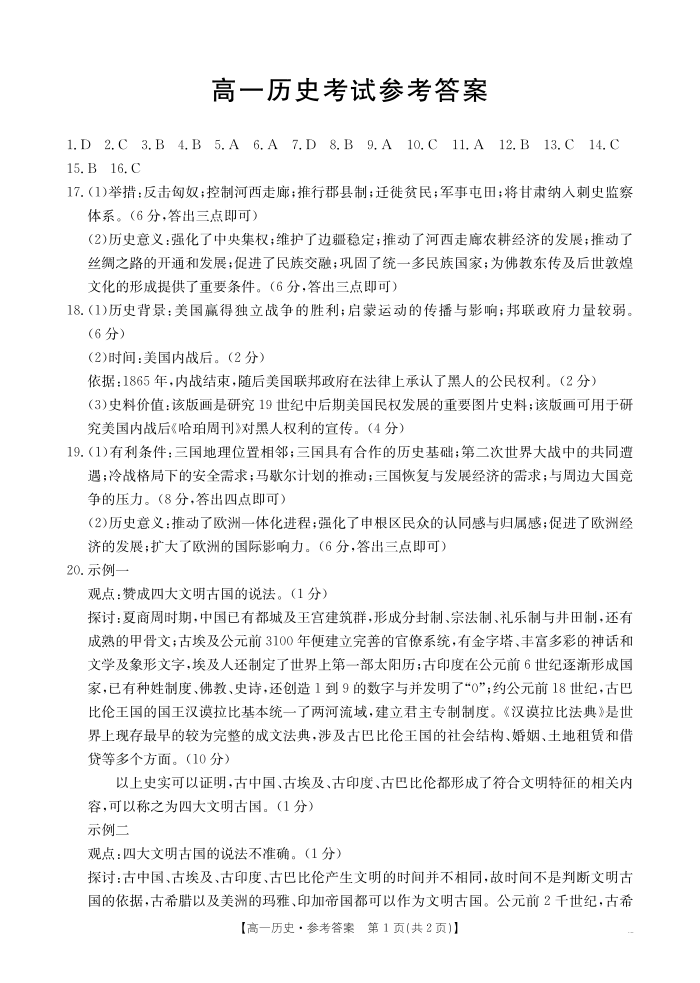 高一历史答案--内蒙古2024-2025学年高一下学期7月联考