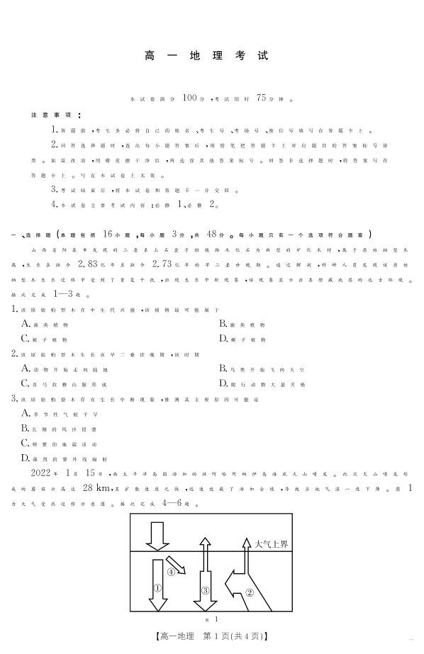 高一地理--内蒙古2024-2025学年高一下学期7月联考