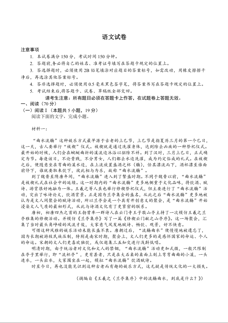 高一语文+答案--四川省广安市广安区等3地2024-2025学年高一下学期7月期末统测