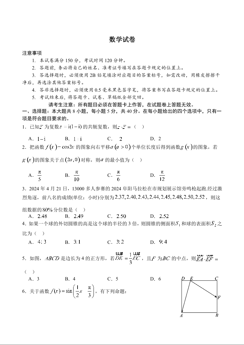 高一数学+答案--四川省广安市广安区等3地2024-2025学年高一下学期7月期末统测