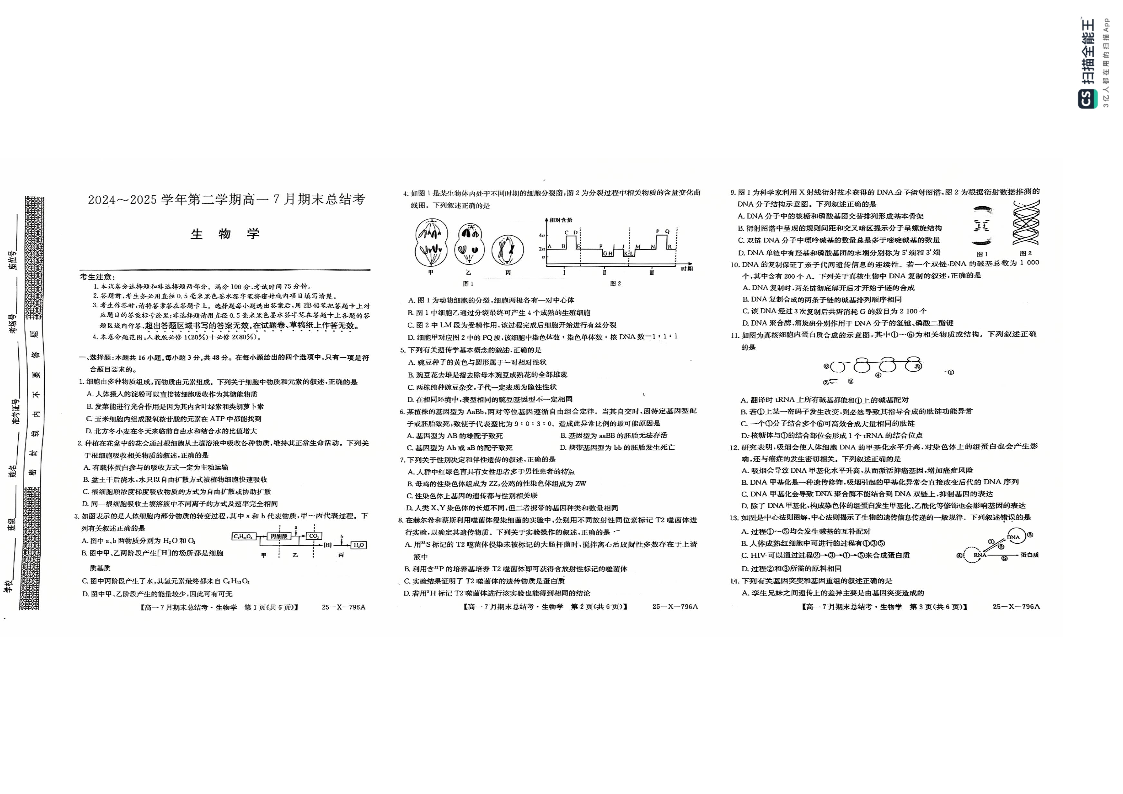高一生物+答案--山西省三晋卓越联盟2024-2025学年高一下学期7月期末总结考