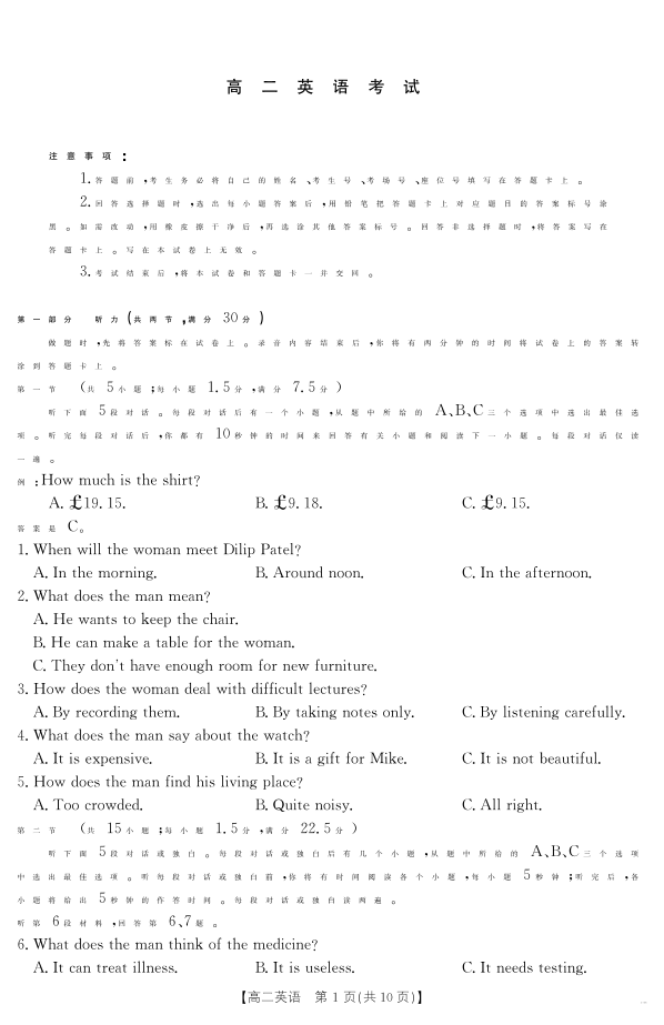 高二英语--内蒙古2024-2025学年高二下学期7月联考