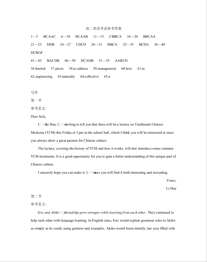 高二英语答案--内蒙古2024-2025学年高二下学期7月联考