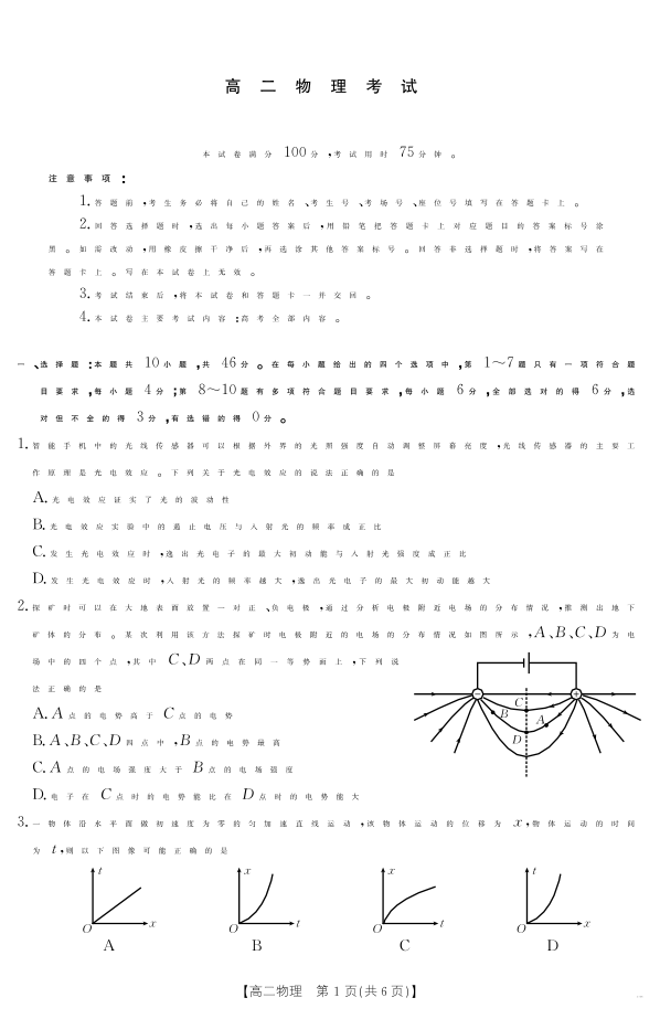 高二物理--内蒙古2024-2025学年高二下学期7月联考