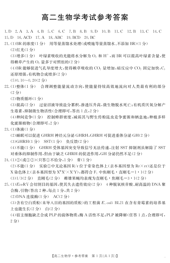 高二生物答案--内蒙古2024-2025学年高二下学期7月联考