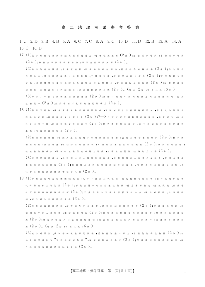 高二地理答案--内蒙古2024-2025学年高二下学期7月联考