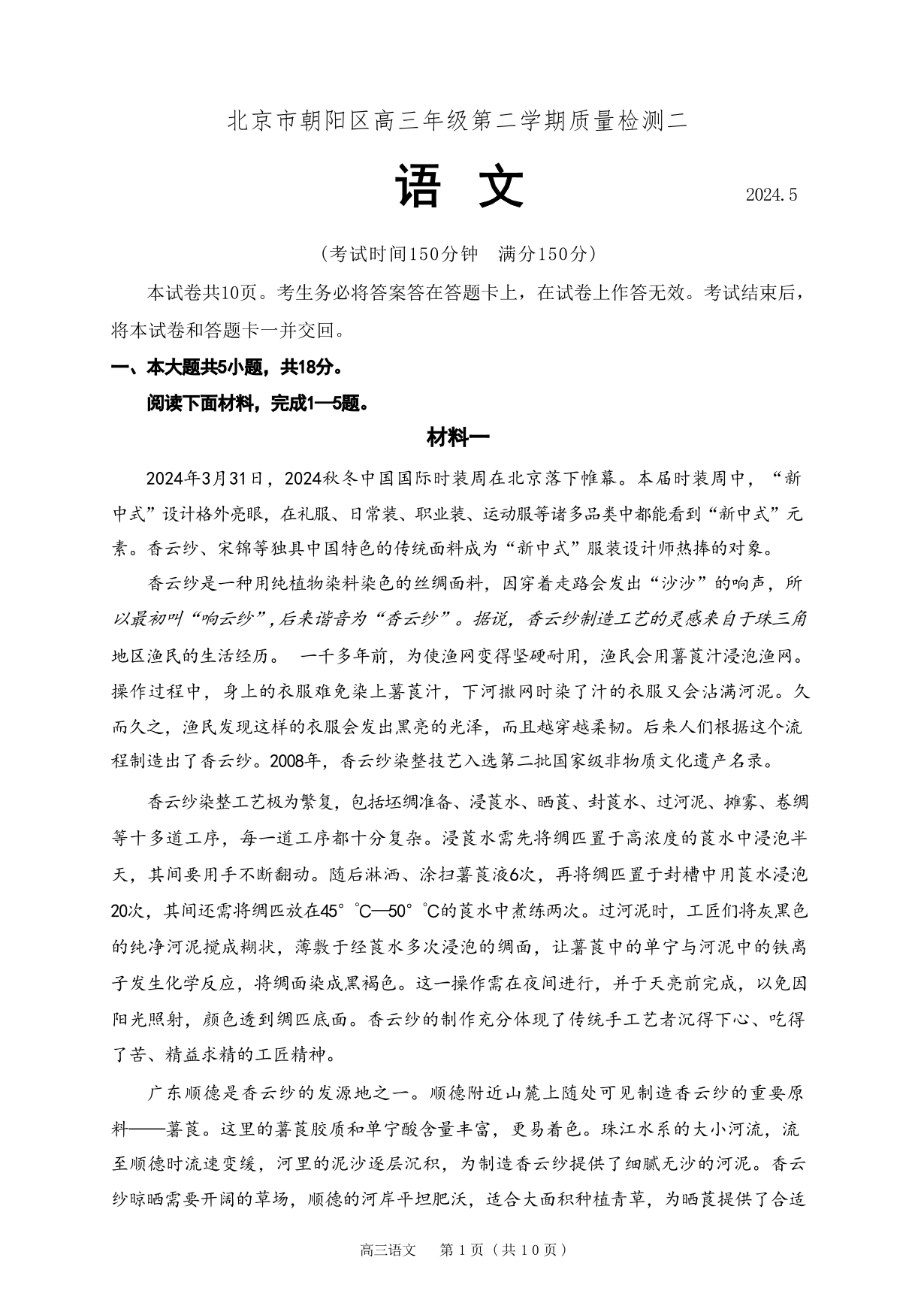 北京市朝阳区2024届高三二模语文+答案