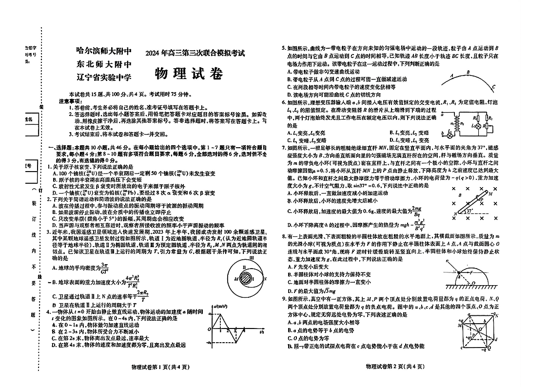 东北三省三校2024届高三下学期第三次联合模拟考物理