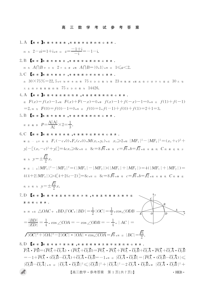 河北省保定市九校2024届高三下学期二模数学答案