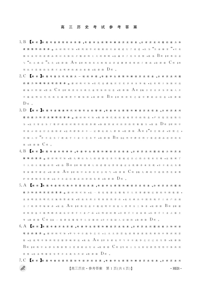 河北省保定市九校2024届高三下学期二模历史答案