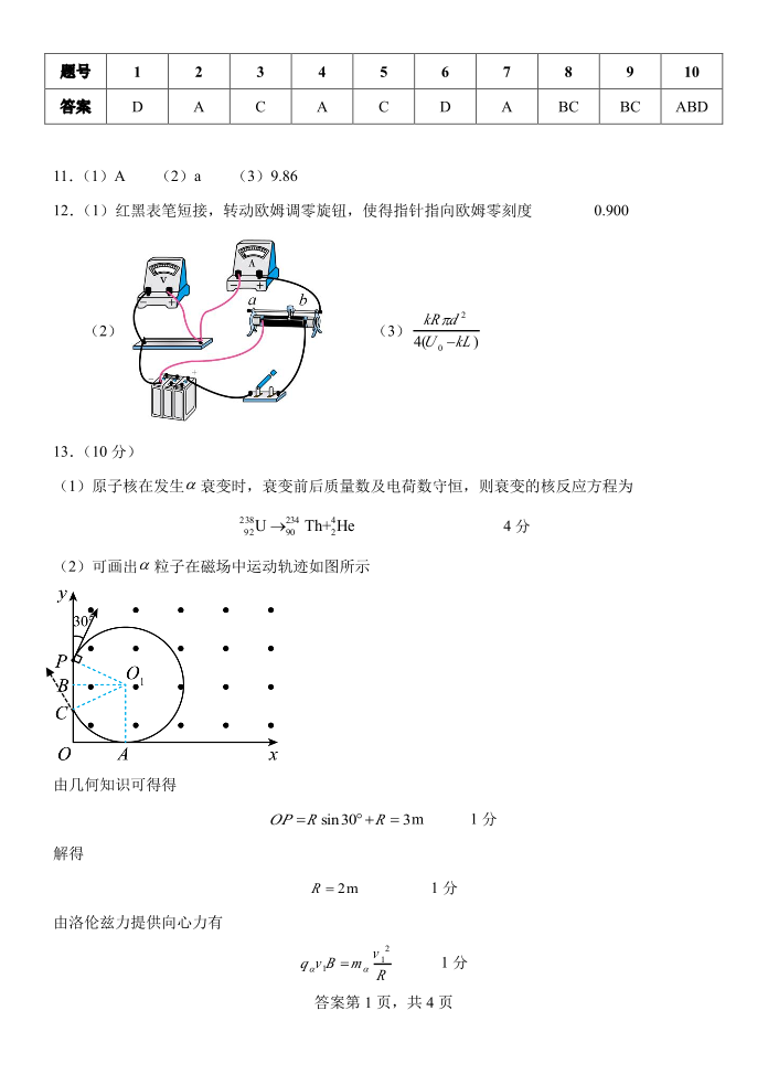 吉林省长春市东北师范大学附属中学2024届高三下学期第六次模拟考试物理答案