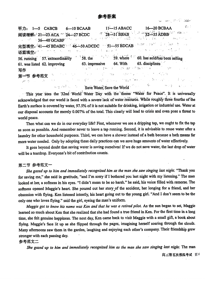 吉林省长春市东北师范大学附属中学2024届高三下学期第五次模拟考试英语答案