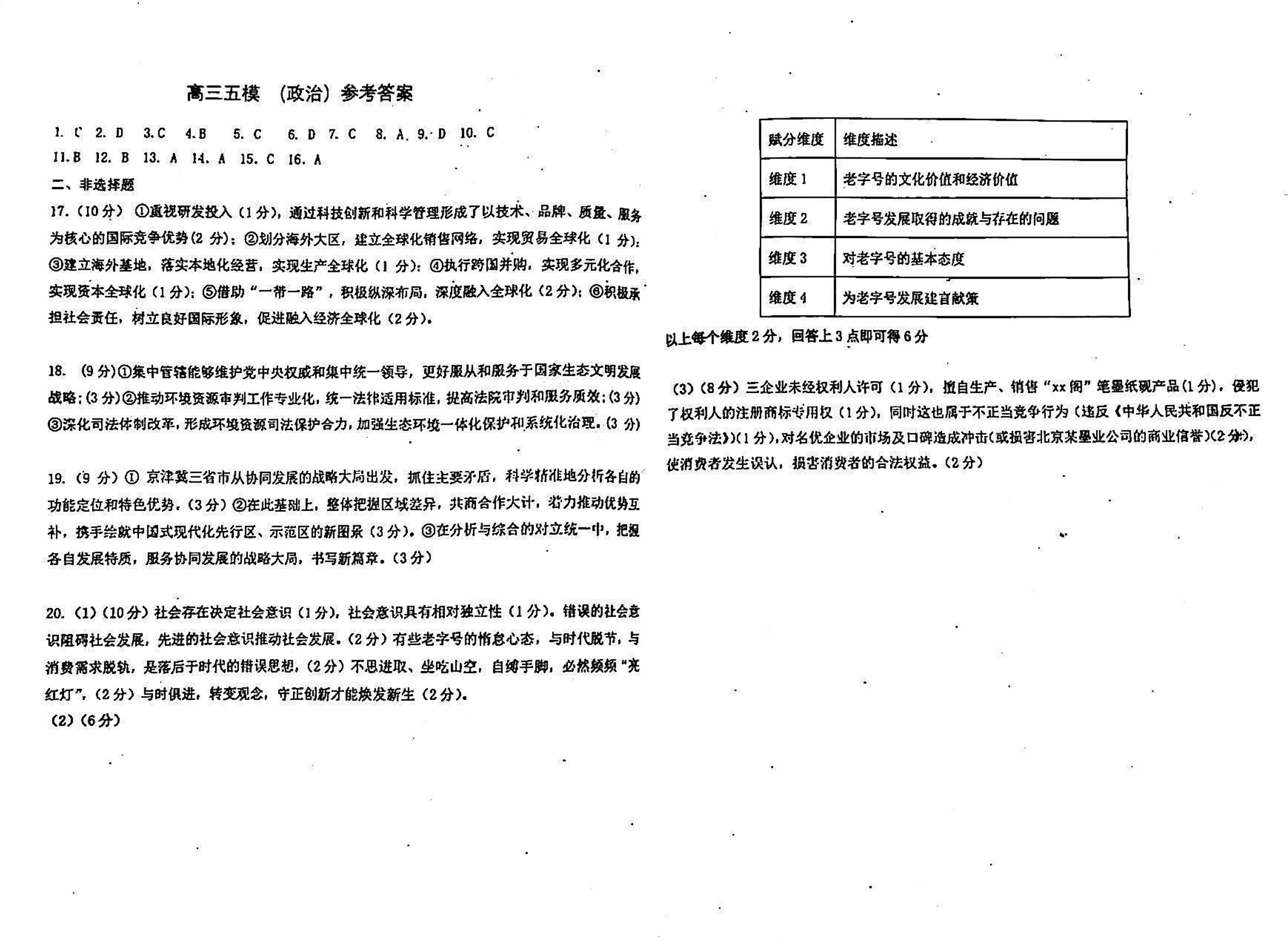 吉林省长春市东北师范大学附属中学2024届高三下学期第五次模拟考试政治答案