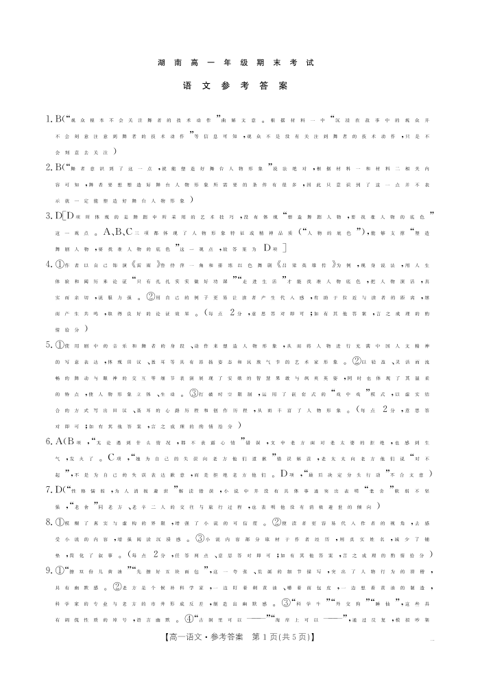 高一语文答案--湖南省耒阳市2024-2025学年高一年级下学期7月期末考试