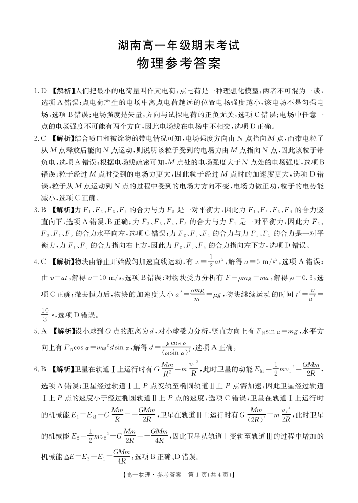 高一物理答案--湖南省耒阳市2024-2025学年高一年级下学期7月期末考试