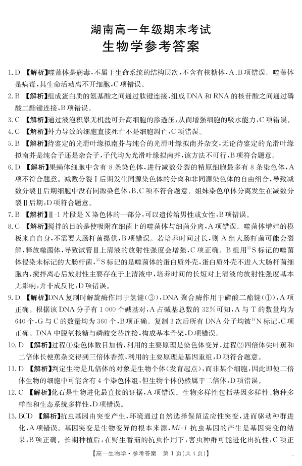 高一生物答案--湖南省耒阳市2024-2025学年高一年级下学期7月期末考试