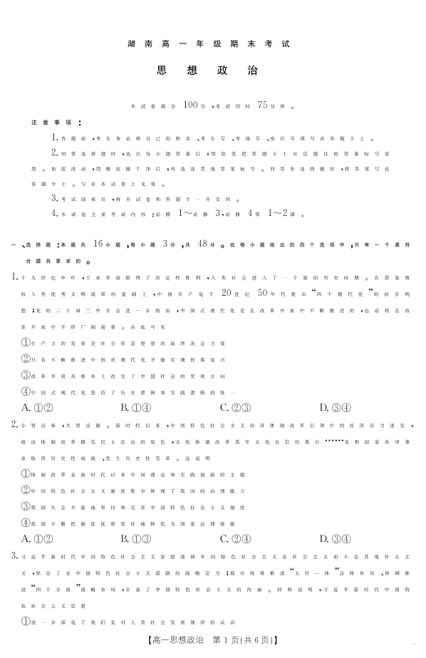 高一政治--湖南省耒阳市2024-2025学年高一年级下学期7月期末考试
