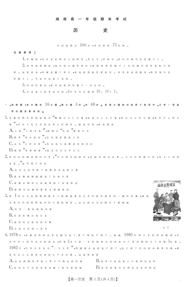 高一历史--湖南省耒阳市2024-2025学年高一年级下学期7月期末考试