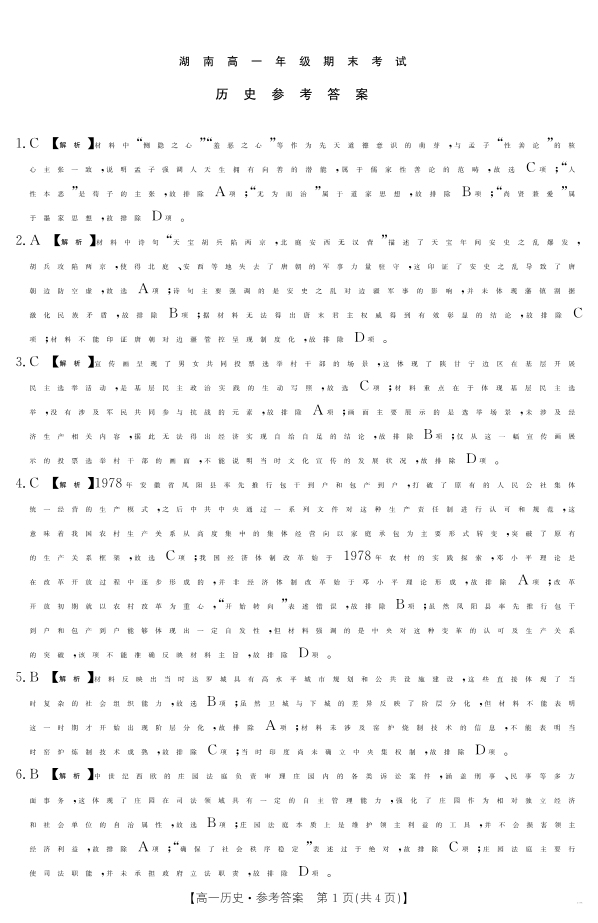 高一历史答案--湖南省耒阳市2024-2025学年高一年级下学期7月期末考试