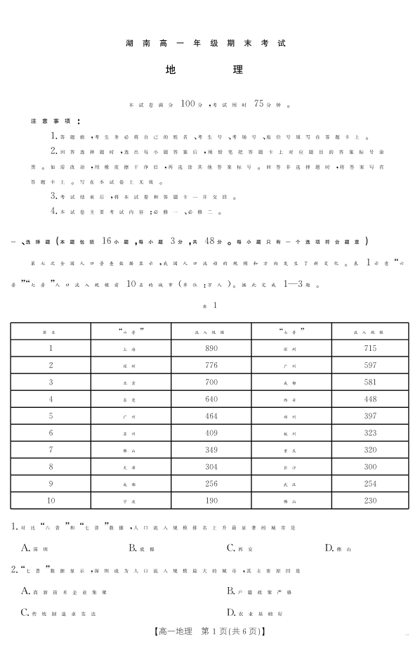 高一地理--湖南省耒阳市2024-2025学年高一年级下学期7月期末考试