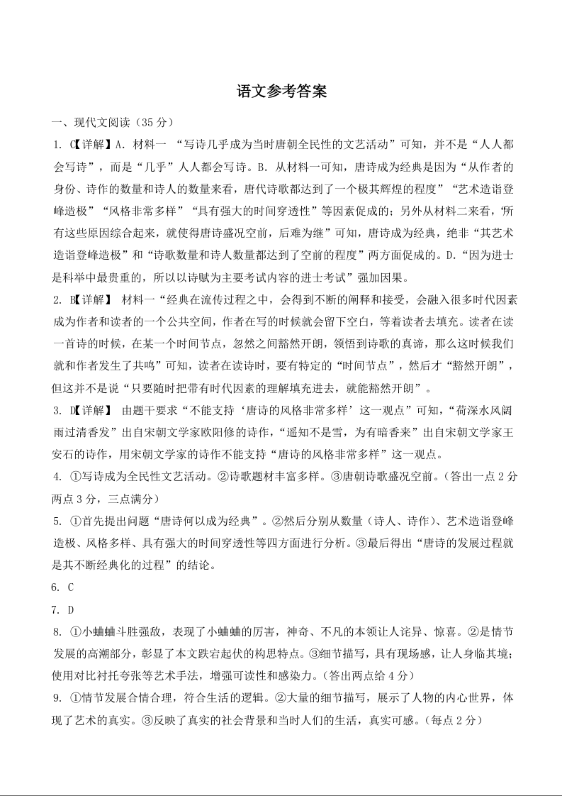 高一语文答案--湖南省邵阳市新邵县2024-2025学年高一下学期期末质量检测