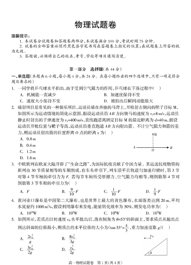 高一物理+答案--湖南省邵阳市新邵县2024-2025学年高一下学期期末质量检测
