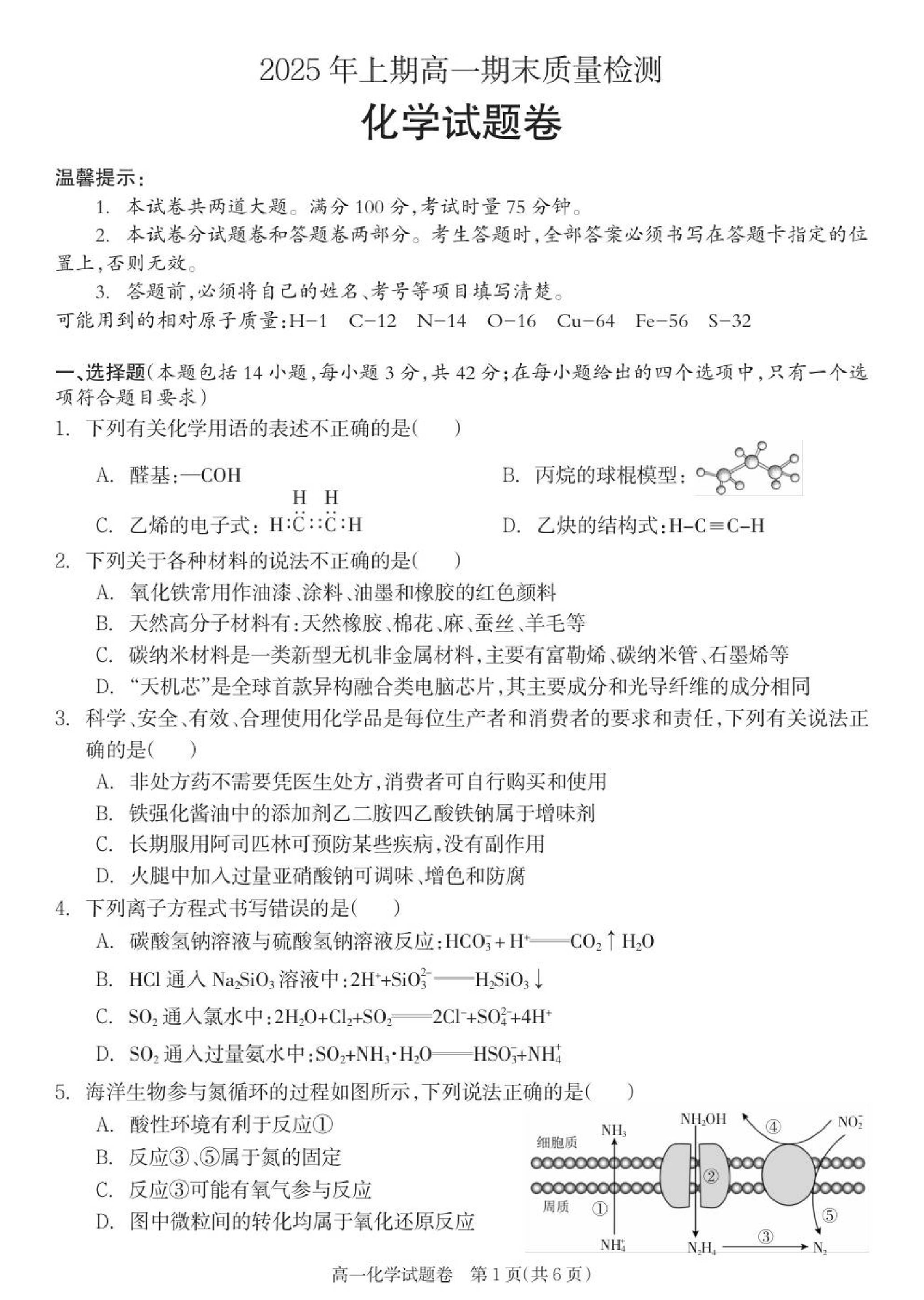 高一化学--湖南省邵阳市新邵县2024-2025学年高一下学期期末质量检测