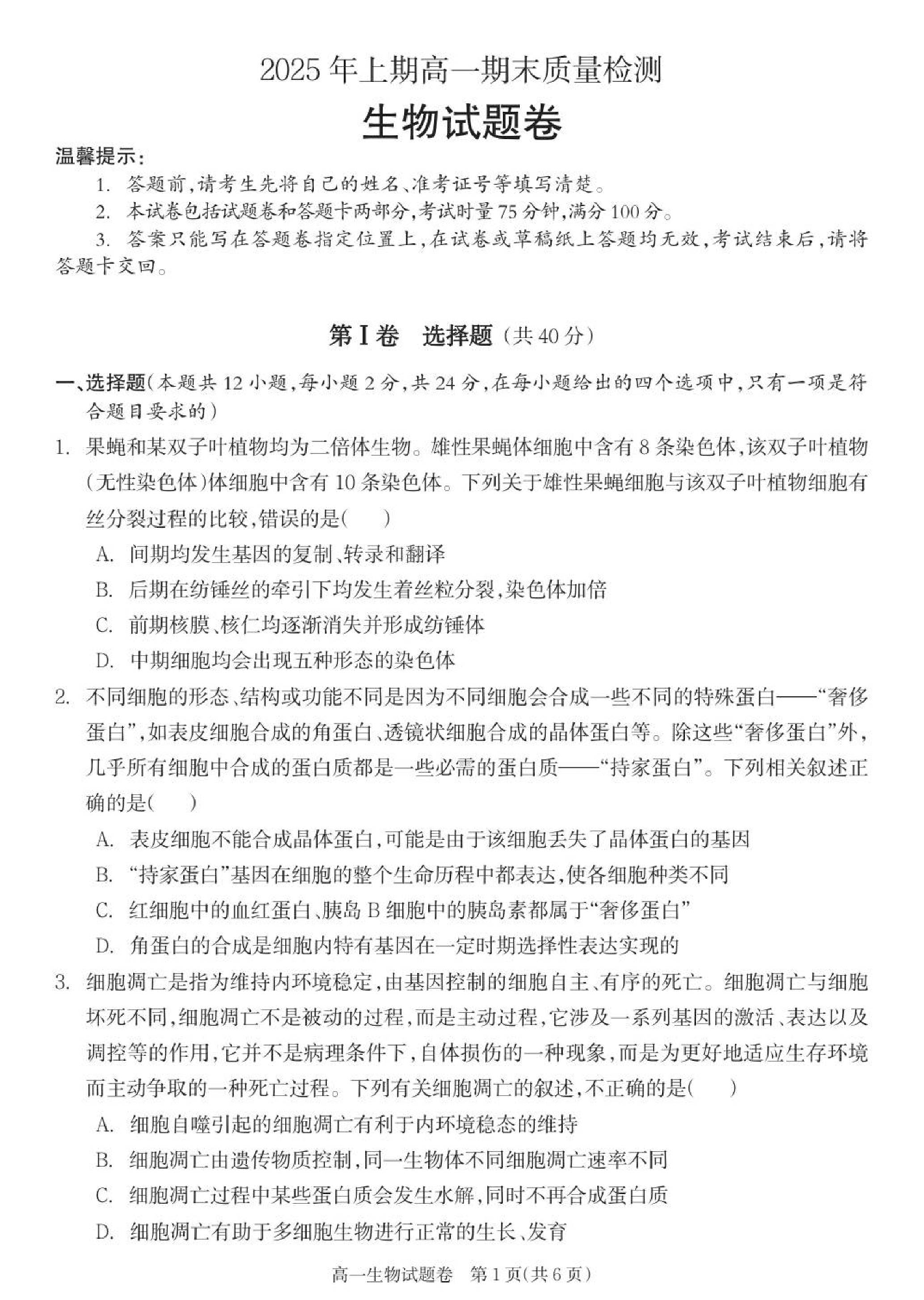 高一生物--湖南省邵阳市新邵县2024-2025学年高一下学期期末质量检测