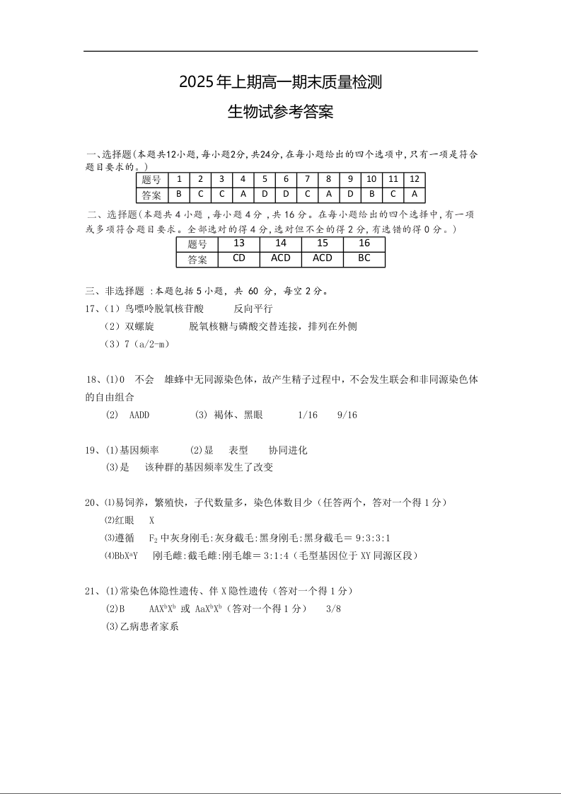 高一生物答案--湖南省邵阳市新邵县2024-2025学年高一下学期期末质量检测