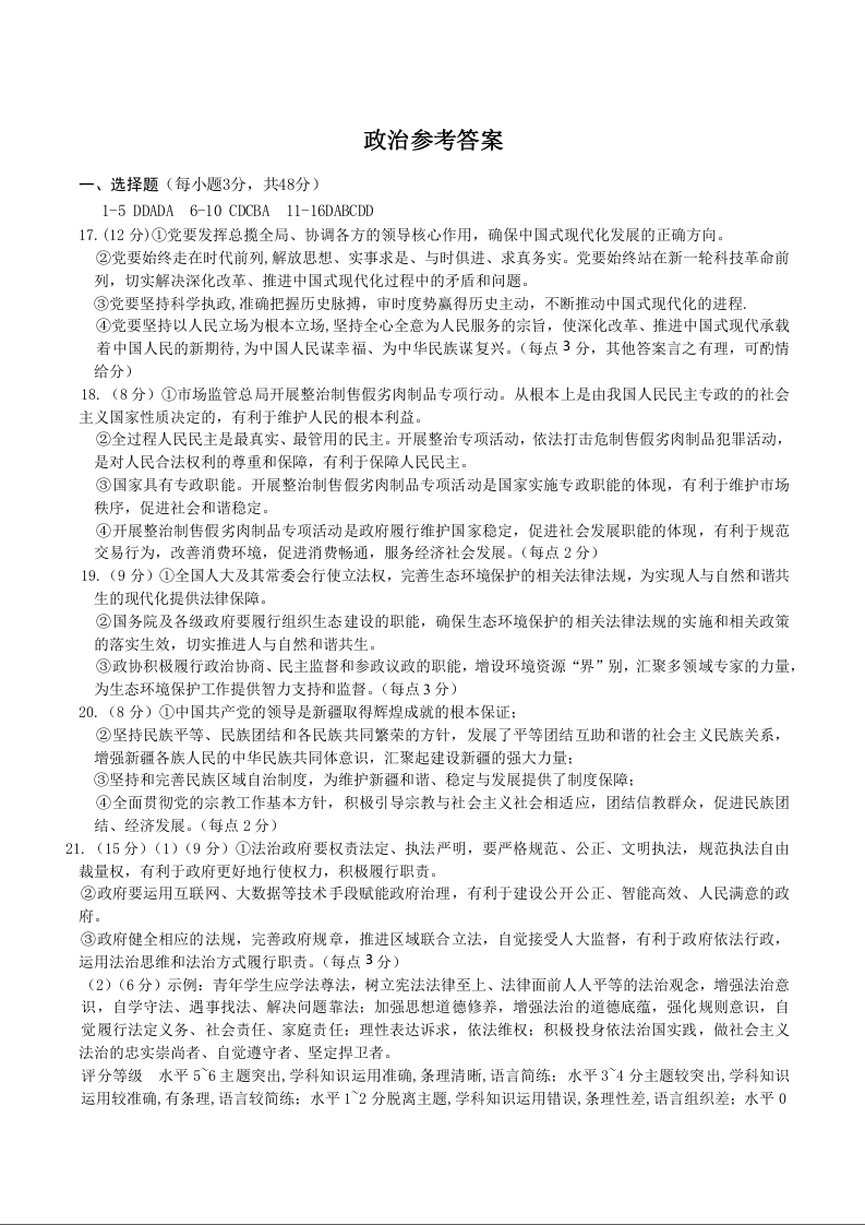 高一政治答案--湖南省邵阳市新邵县2024-2025学年高一下学期期末质量检测